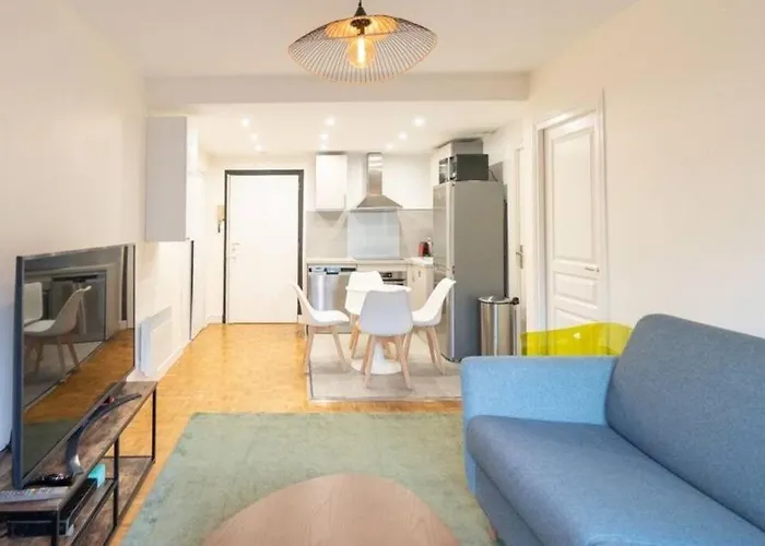 L'Appartamento Coeur 16Eme, Standing Et Calme, dotato di un balcone e una zona spogliatoio, offre comfort moderni come un televisore e una TV a schermo piatto con canali satellitari per elevare il tuo soggiorno. La struttura invita gli ospiti a soggiornare in 1 camera da letto. Quest'alloggio dispone di 1 bagno. Inoltre, il bagno è dotato di asciugacapelli e asciugamani.